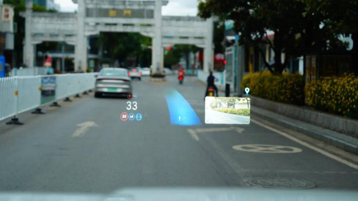 47英寸AR-HUD足够清晰,打转向灯时还能显示盲区影像: