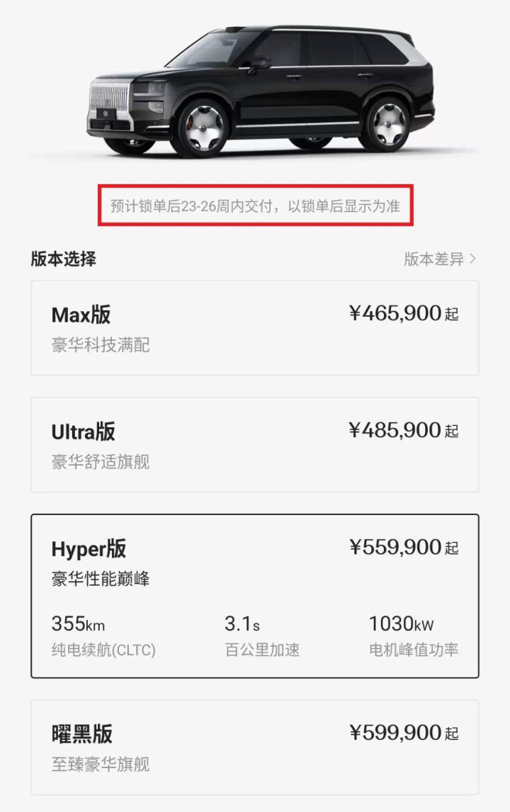 (Hyper和曜黑版交付要晚大约20周,据说是因为48V主动稳定杆产能受限)
