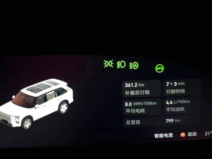 在行驶361.2km后,最终表显能耗8.0kWh+4.4L/100km,折算下来等效22.5kWh或6.8L/100km,仅供参考。